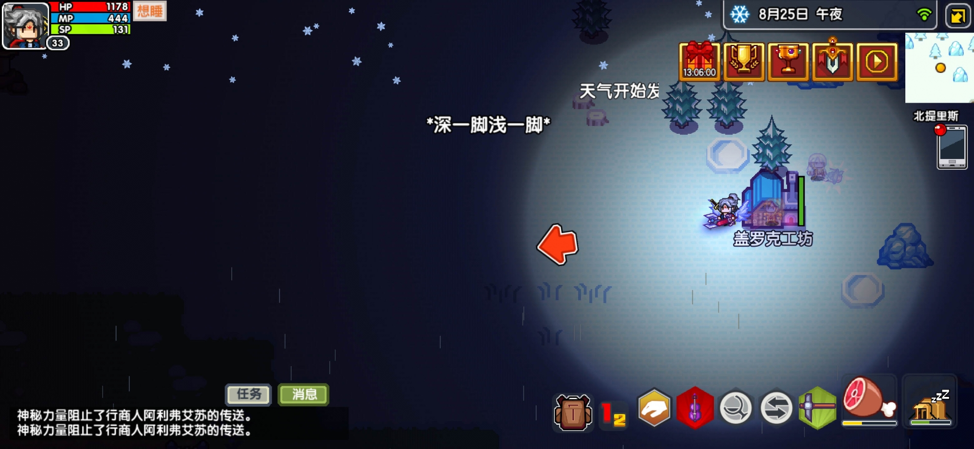 黑星神器的属性是固定的,这个大家应该都是知道的,但是可能很多人发现了一个问题——会有极少的黑星装备是“残星”的,他们的属性低于固定值,所以就有来重置的概念,这个位置是在雪地上的盖罗克工坊,大使馆向右侧或者是归还卷轴直接传送到工坊内部。