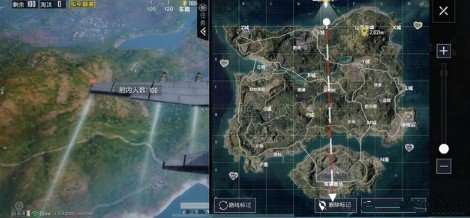 60秒等待的时间转瞬即过,已经乘坐上飞机准备跳伞。此时的第一反应就是打开小地图选择合适的坐标点,忽然发现小地图也有了新变化,不仅出现了4个爱心岛,而且还出现了多个特殊标记。那么问题来了,拥有特殊标记的坐标点会有什么变化。选择了“山顶废墟”这里作为落地点,因为这里也有特殊标记,看看究竟会出现什么吧。