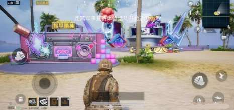 果不其然,拥有特殊坐标的山顶废墟新增了一个全新的舞台场景建筑,两侧有两个红色的普通空投,中间是一个设定非常炫酷的舞台~在这里呢,需要告诉大家的事情是:红色空投箱子仅是一种装饰品而已,并不能让我们获得空投装备。但是这个舞台,也有一个很神奇的作用。