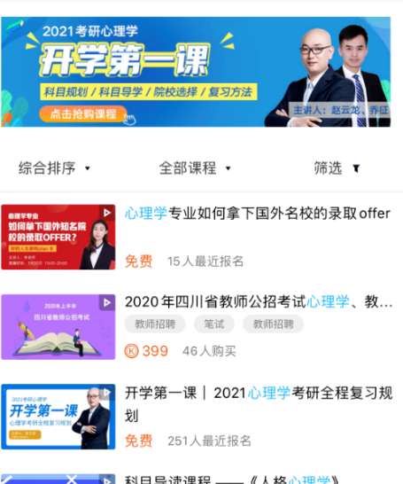 在罗列出的可测,即可点击进去报名听课了,如下图所示