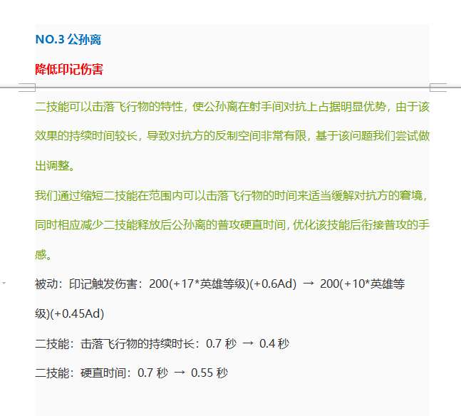 公孙离可是削弱了,她在后期的伤害真的很疼。官方这次对公孙离被动的削弱是合理的,虽然她很考验操作的人,但在大佬手里确实很出彩。而对二技能的削弱,有点过!这可是存活之本,这个其实没必要动的。