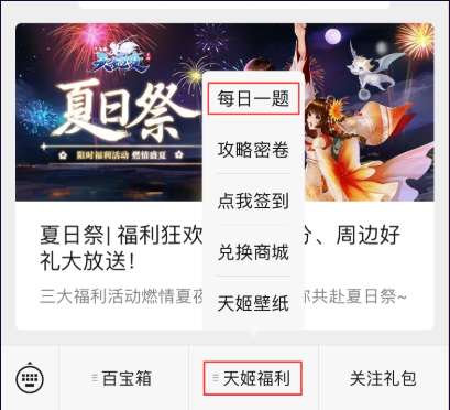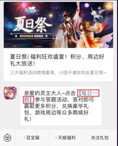 Step1:点击公众号菜单栏【天姬福利-每日一题】