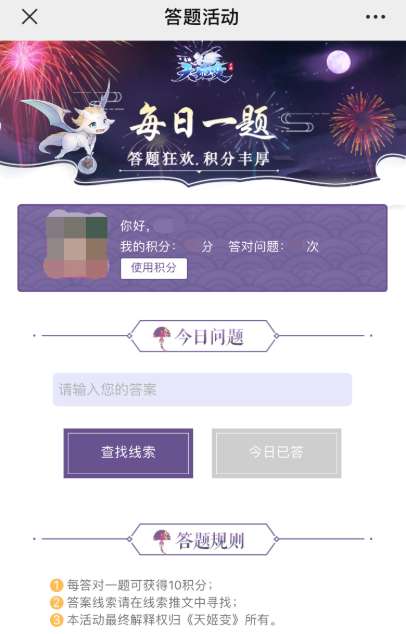积分大放送!夏日祭活动期间,每日零点公众号会上线一期互动答题,答对即可赢取10积分,可在积分商城兑换众多好礼!