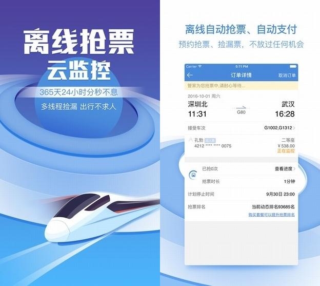 1. 一键抢票,退票余票实时监控,下单更快速;