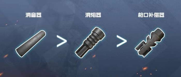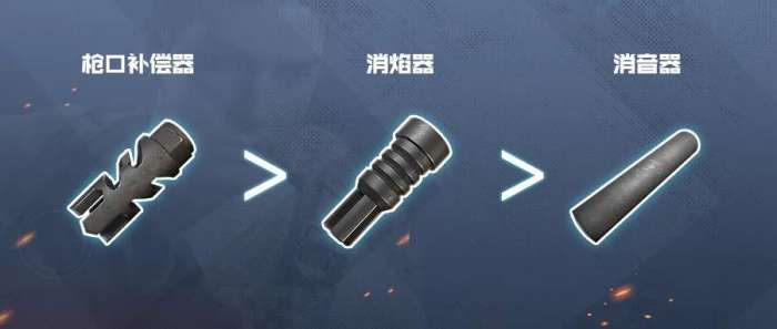 不同于握把那边花里胡哨的竞争,游戏中突击步枪可以使用的枪口有三种:枪口补偿器,消焰器,消音器。