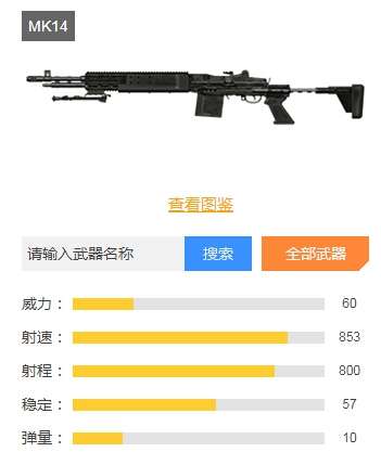 优点:同类型的连狙,伤害稍逊MK14,其他的属性没什么差别;
