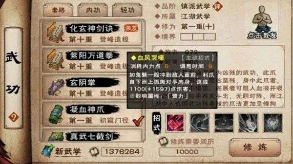 凝血神爪是即将新增添的拘魂阁顶级拳系武学,包含招式如下: