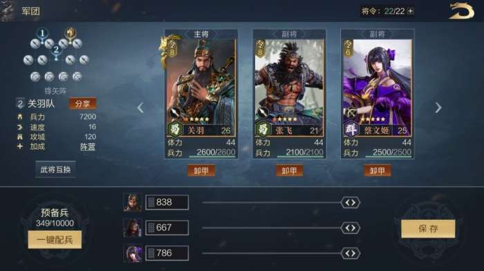 武将选择就比较简单粗暴了,要那种越强壮,越持久的武将是顶好的(输出越高,技能时间越久),在这里推荐蜀国五虎大猛男,关二哥你值得拥有。