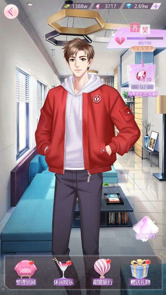 羁绊中,可以选择已经开启的男主,帮他整理房间、赠送礼物、一起甜蜜旅行、还可以一起逛逛街、爬爬山的休闲娱乐每一天哦