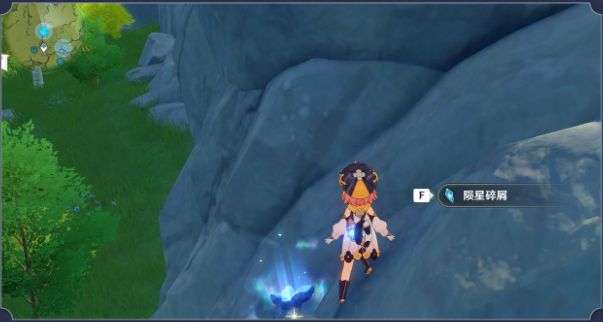 抵达受灾区域后,可以在左上角小地图上定位陨星碎屑的大致位置。角色接近碎屑时,神之眼会与之发生共鸣发出光芒,与碎屑距离越近光芒越强烈。