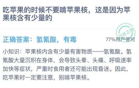 吃苹果的时候不要啃苹果核这是因为苹果核含有少量的 蚂蚁庄园今日答案12.11吃苹果[图文]