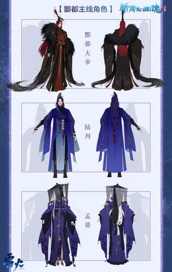 本次酆都地图迭代,将采用独特的古风赛博风格,带给大家全新的视觉体验:色调以暗紫和黑色为主,风格幽深神秘。在地图迭代的同时,酆都中为少侠们所熟悉的NPC也将进行迭代:霸气的酆都大帝身着赤色皮草长袍,身形魁梧;陆判一袭宝蓝长袍,眉目英俊,一幅正气做派;孟婆黑白双色的头发极具特色,黑纱下的面容一半年轻,一半苍老。不知她究竟是少女还是老妪?