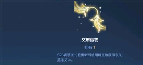 大家在开出艾琳信物后,上面显示就是s23赛季正式服更新后使用可以直接获得永久英雄艾琳。