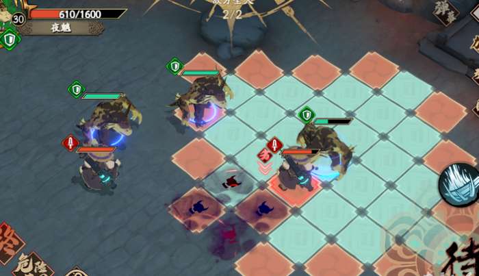 时间来到第三回合,另外两名豪侠逐渐靠近,我们让夜魅走至相应位置。