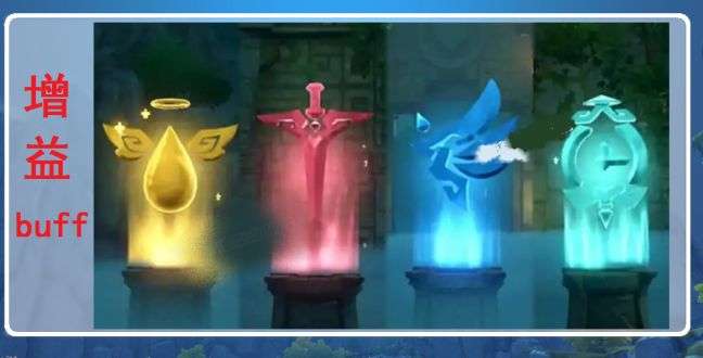 2、这四种buff分别代表岩火水风(并不一定完整),消息不多,所提供的增益效果只能靠外表来猜测:岩系外形是以带光环的水滴,并伴随着一个个小小的加号,以普遍理性而论,这应该是治疗向;火系外表是一把剑,考虑到双火buff,这应该会是偏向于输出的增幅,攻击力、双暴之类;水系外表是一个图案,一个长翅膀的人么?盲猜是提升移速;风系,类似钟表的图案,应该与技能冷却有关。
