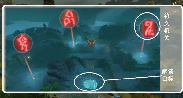 4、玩家需要在地图内的三个不同方位,找到三个符文,激活指向中心点机关的光柱。至于解锁后会发生啥子,暂时不得而知,不过从第一张图的内容来看,中心点有一个大洞,下方被仙家法术封锁,说不定是前往下一关的路。活动最终会产出原石,摩拉,大英雄经验等等。