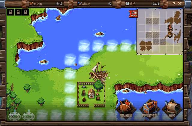 这里是游戏最核心的模块了,出航买卖会遇到小怪,前期耐久不够,我们要尽量避免碰到小怪,所以玩法就如魂斗罗一般。一开始只能选择手动出航。