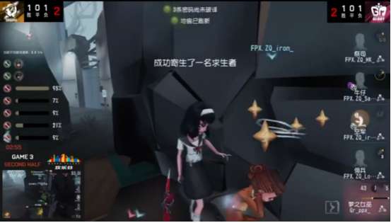 第五人格2021IVL夏季赛常规赛 Gr vs FPX.ZQ 第三局 双方求生者三出 FPX.ZQ守住比分