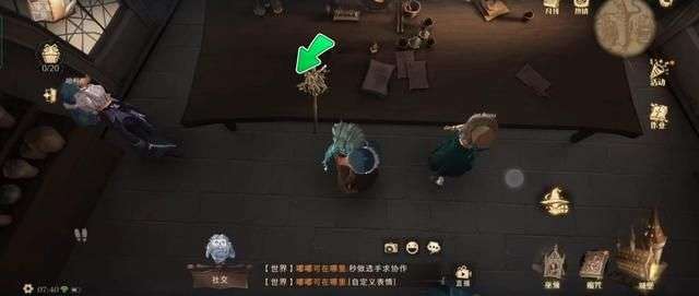 4、来到魔药课教室里,找到桌子中间会动的魔法掸子并点击。