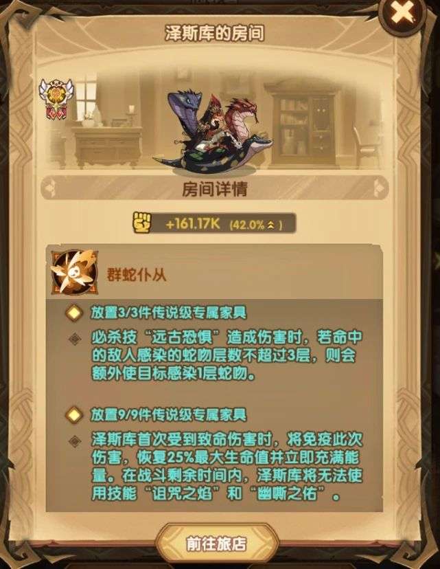 泽斯库引导蛇宠兹苏,向攻击力最高的敌人喷射神经毒素,造成260%攻击力的伤害,并且使目标陷入迷惑状态,无法获得能量,只能使用普通攻击,普通攻击造成的伤害转换为治疗效果,持续4秒。
