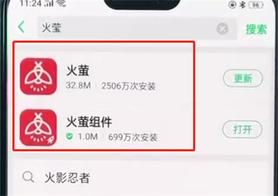 1、首先打开oppor15手机的桌面,进入软件商店,在搜索栏中输入火萤,点击下载火萤和火萤组件;