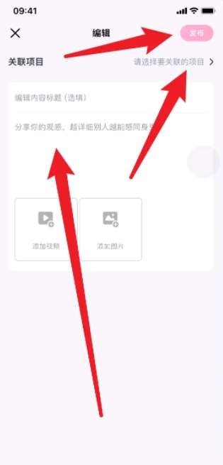 在发动态界面,输入文字内容,点击上面关联项目后,点击发布即可评论。