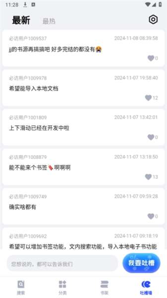 5、点击吐槽墙,大家在这里可以尽情吐槽,也可以查看其他用户的吐槽内容