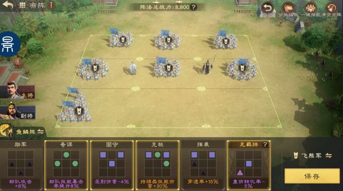 阵型推荐选择奇谋、固守、克敌、无羁绊;