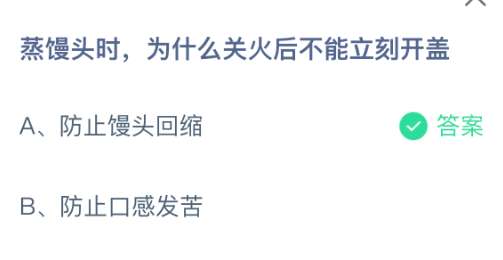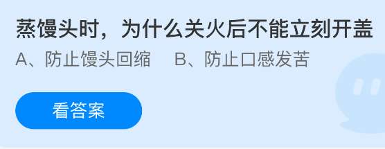 蒸馒头时,为什么关火后不能立刻开盖?支付宝小鸡课堂开课啦!每天只需花一分钟,动动手指答对问题,180g饲料立马到账!看着自家小鸡吃得饱饱的,还能顺便捐个爱心,一举两得!2026年3月21日蚂蚁庄园的小鸡课堂题目正确答案是【防止馒头回缩】,蒸馒头关火后立刻开盖,最直接的结果就是馒头迅速回缩、表皮发皱。