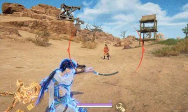 技能二就更有意思了。用这个技能会引爆机械臂,把自己弹射到空中开始滑翔。滑翔期间可以攻击、跳跃、振刀或者闪避,这几个操作都能提前结束滑行。所以这个技能不只是用来跑路的,也可以在空中接输出。打法上可以先弹射拉开距离,再从空中切入,节奏一乱对手就比较难应对。