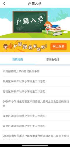 2、在户籍入学页面中可以根据需求查看下面资讯;