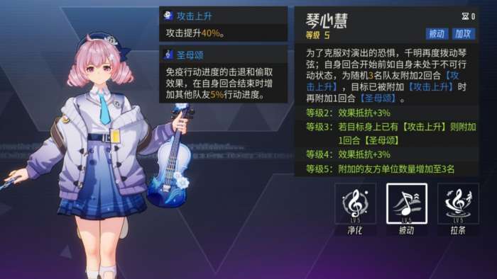 幻音千明拉条所有队友,并附加攻击上升,若目标已附加攻击上升,再附加圣母颂,由于终结技3级可以直接提升圣母颂的数值,推荐在点满被动后将终结技先升到3级