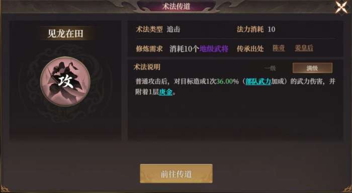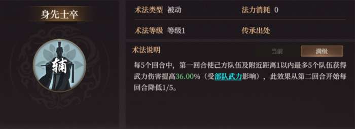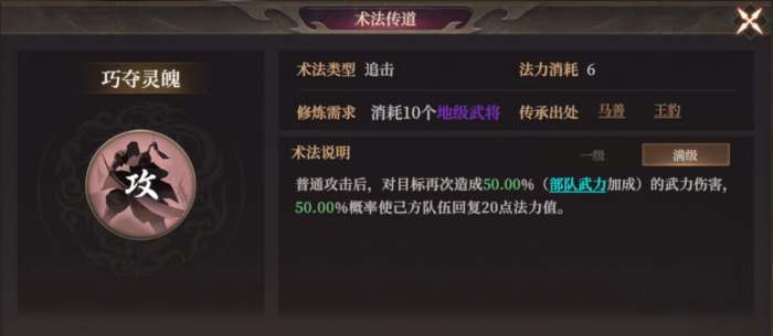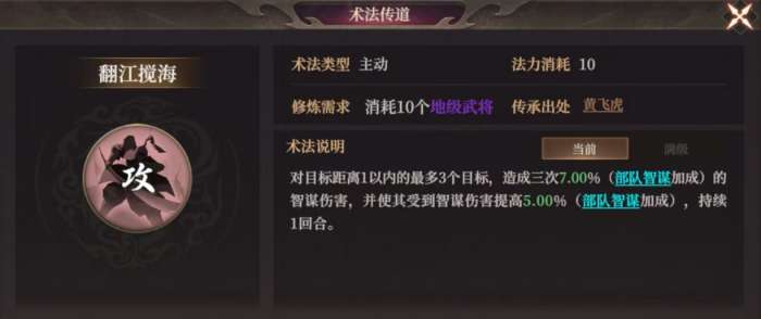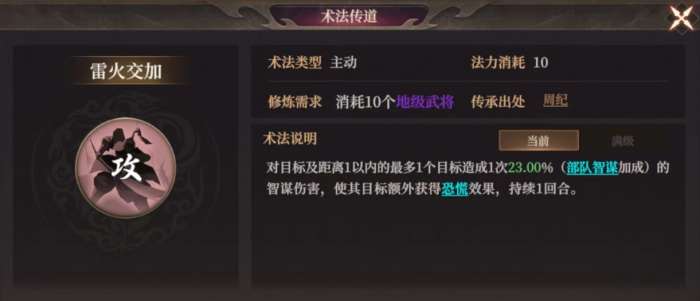 满级伤害倍率46%,还附加恐慌效果,进一步提升智谋伤害。重要性等同于驱雷掣电,智谋C优选。