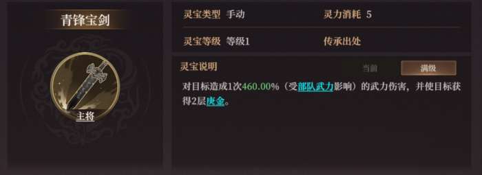 虽然下手不稳,但鄂顺胜在手段足够多。担任主将时,灵宝【青锋宝剑】可以给目标挂上2层庚金。如果再带上造成流血的术法,几种提升武力伤害的状态就齐活了。哪怕是面板属性不够突出,积少成多的加成,也能摧毁敌人的防御。
