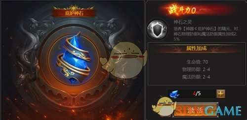 神石:消耗【神石碎片】提升等级。可通过黑市商城、野外BOSS、材料商店、每日特惠获取