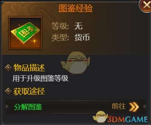 3、当获得相同图鉴时,可进行分解,获得【图鉴经验】升级各图鉴等级。