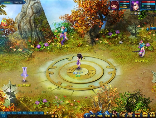 一来到秋枫岭,首先就可以看到地面上有一个巨大圆型图案,虽然和旅游无关但还是可以讲一讲。传说这图案其实是一个法阵,是上古的术士为了封印远古妖魔而设立的结界。因为年代久远,这个结界早已失去了效果,但还留存了一丝丝灵力,会吸引附近的小妖,这也是附近捣乱的妖怪比较多的原因。