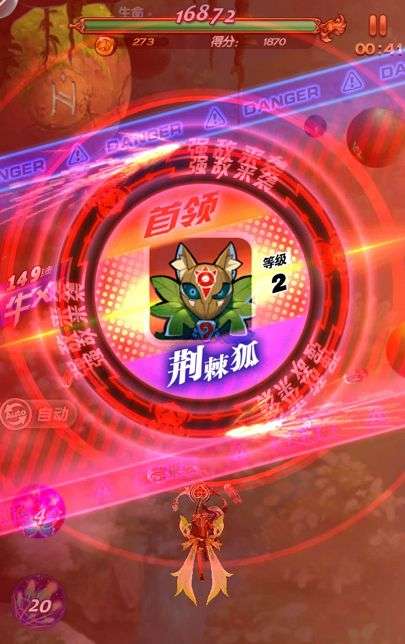 Boss是一只荆棘狐,它会发射全方位攻击的球形子弹包围冒险队员,所以要小心它的子弹,注意躲避哦!