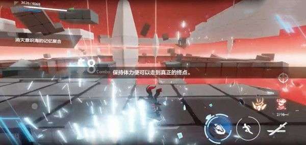 这时候玩家应该会注意到系统也在给出提示,“保持体力便可以走到真正的终点”,所以要点就是血线要维持住。