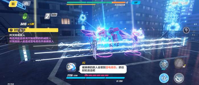 教学关卡,无难度,请复习电网对敌人的特殊效果,并实践如何给电网充能