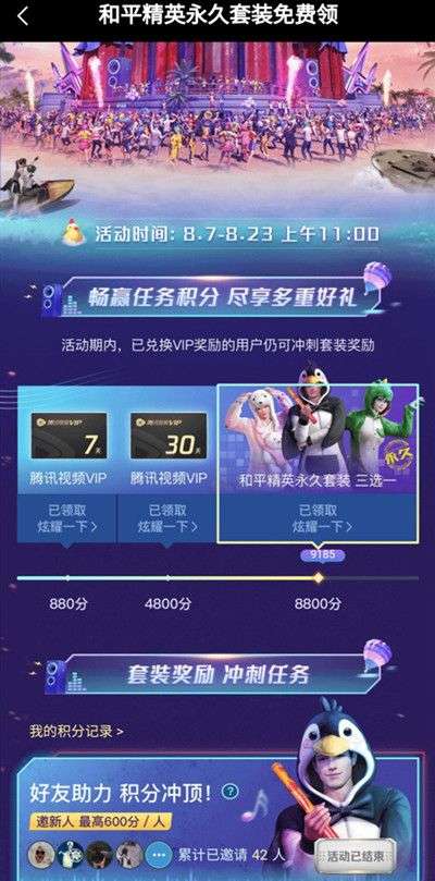 达到880分领取7天腾讯视频会员;