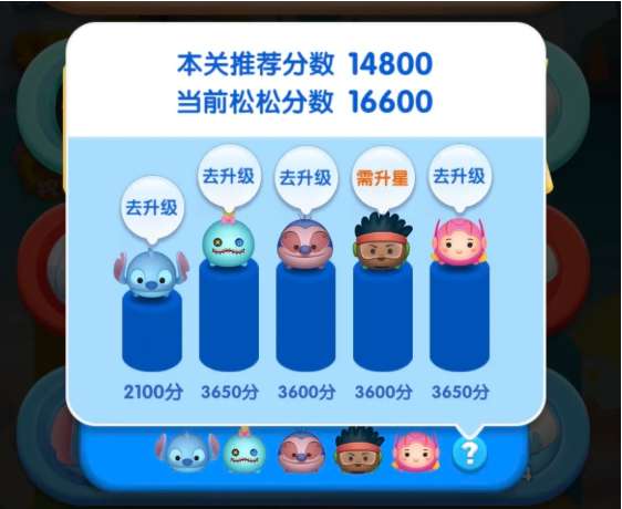 过关分数:16600(在SSR松松只有10级的情况下,其他松松的分数需要达到30、40级不等)