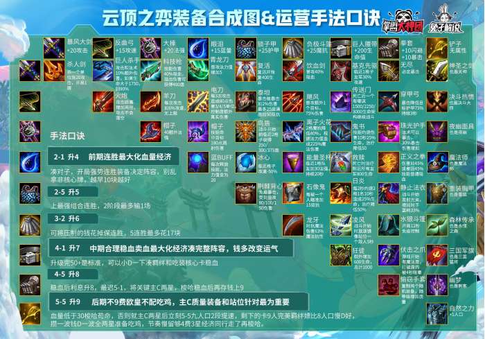 而从5级开始,每个阶段所需要的经验都增加了,这代表开局2-5升4人口变成了2-5,3-2升6的节奏也变了,福星与连胜的思考变得更加重要,不然真的会缺经济。