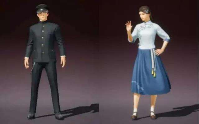 接下来是经典的民国学生装,“忆流金岁月”,男款是经典的全黑中山装,女款是极具民国特色的短袄长裙,散发着那个时代的青春朝气。