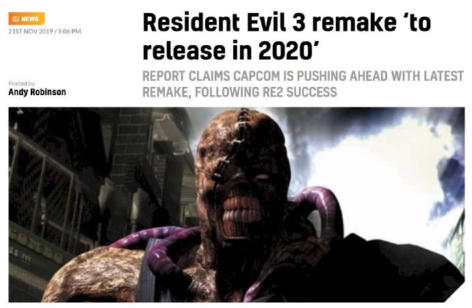 据外媒VGC报道,CAPCOM或将在2020年推出《生化危机3:重制版》,游戏引擎可能会沿用《生化危机2:重制版》的RE引擎。