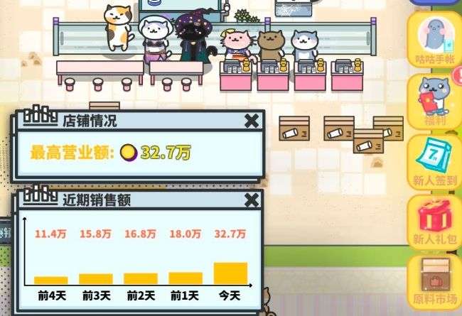 总结:由上表可知速度、魅力、制作三种能力数据最高的均为喵哒,研究能力最高的前三名分别为切西娅、喵咕、喵哒,所以最理想的员工培养为12喵哒1喵咕1切西娅。