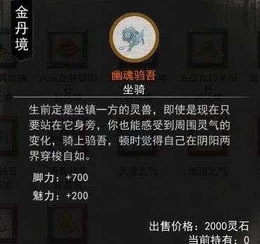 然后来到标有秘宝的地方,在这里触发隐藏剧情,这里选择岂能白来,然后能够获得四个不同的选项,笔者选择的兽骨,能够获得一个金丹期的坐骑。坐骑的属性以及效果看起来还是不错的。另外还会给我们一本小蓝书作为留念。