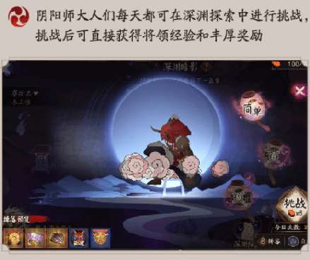 阴阳师大人每天都可以在深渊探索中进行挑战,胜利后可获得将领经验、寮资金和阴阳寮勋章等丰厚奖励。