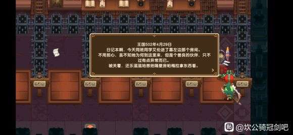 惩戒室中的npc会给我们本关第三个装备(这个装备可以从上面的书堆中的纸条得知是一个叫“艾伦”的人所持有)。