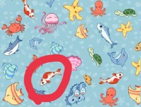 第四题答案:选五个一样的红白鱼。
